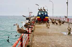 Pelícanos y leones marinos