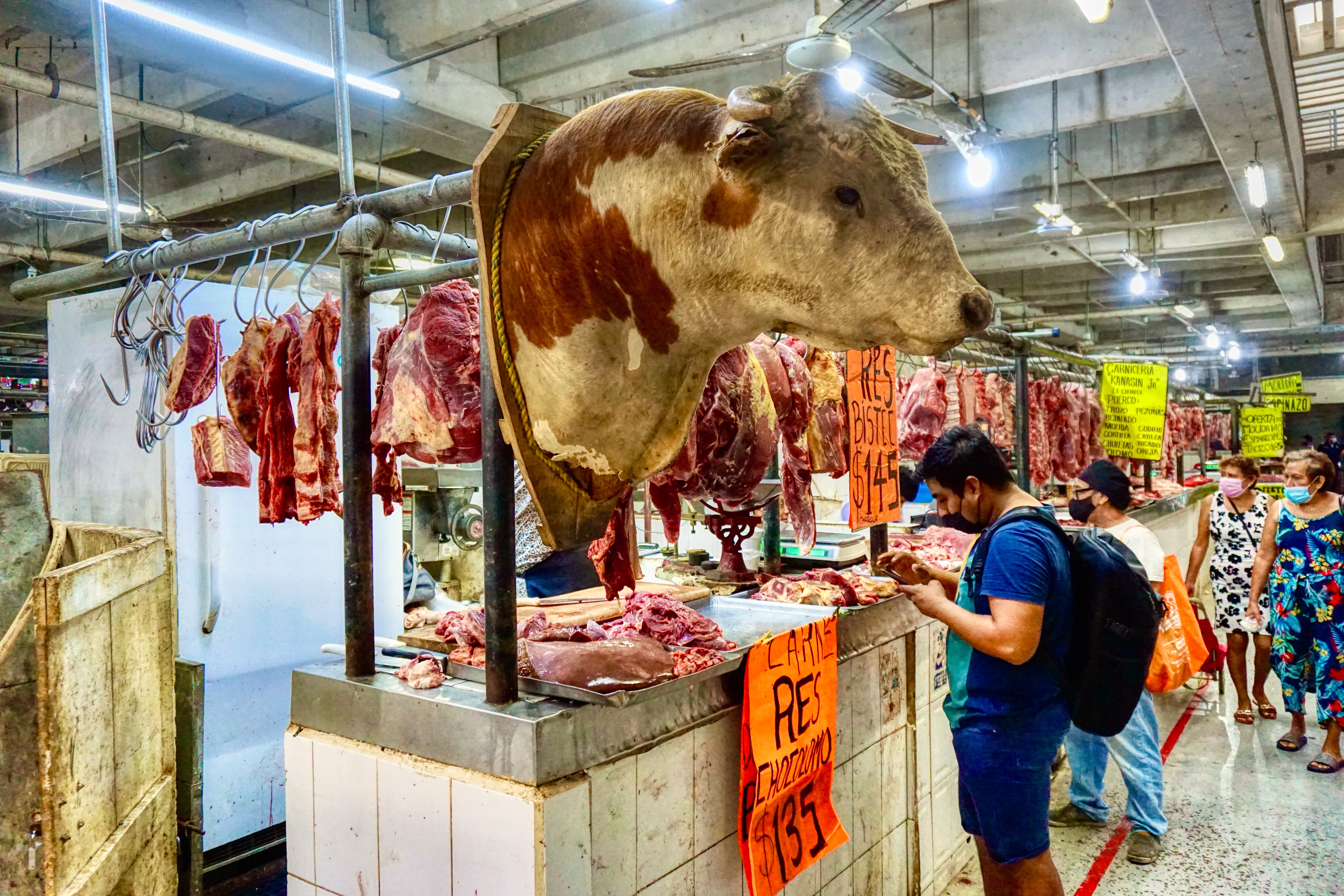 If you’re after an on-the-go snack you might go for some Chicharra, pork skin fried in its own fat accompanied by sour orange, a habanero salsa of course and some cabbage. But if you’re game, how about a bowl of Menudo – beef stomach (tripe) in a steaming bowl of broth with red habaneros. Just don’t find yourself in the butcher section if you’re a vegan… It’s a far cry from your normal high street butcher I can tell you.