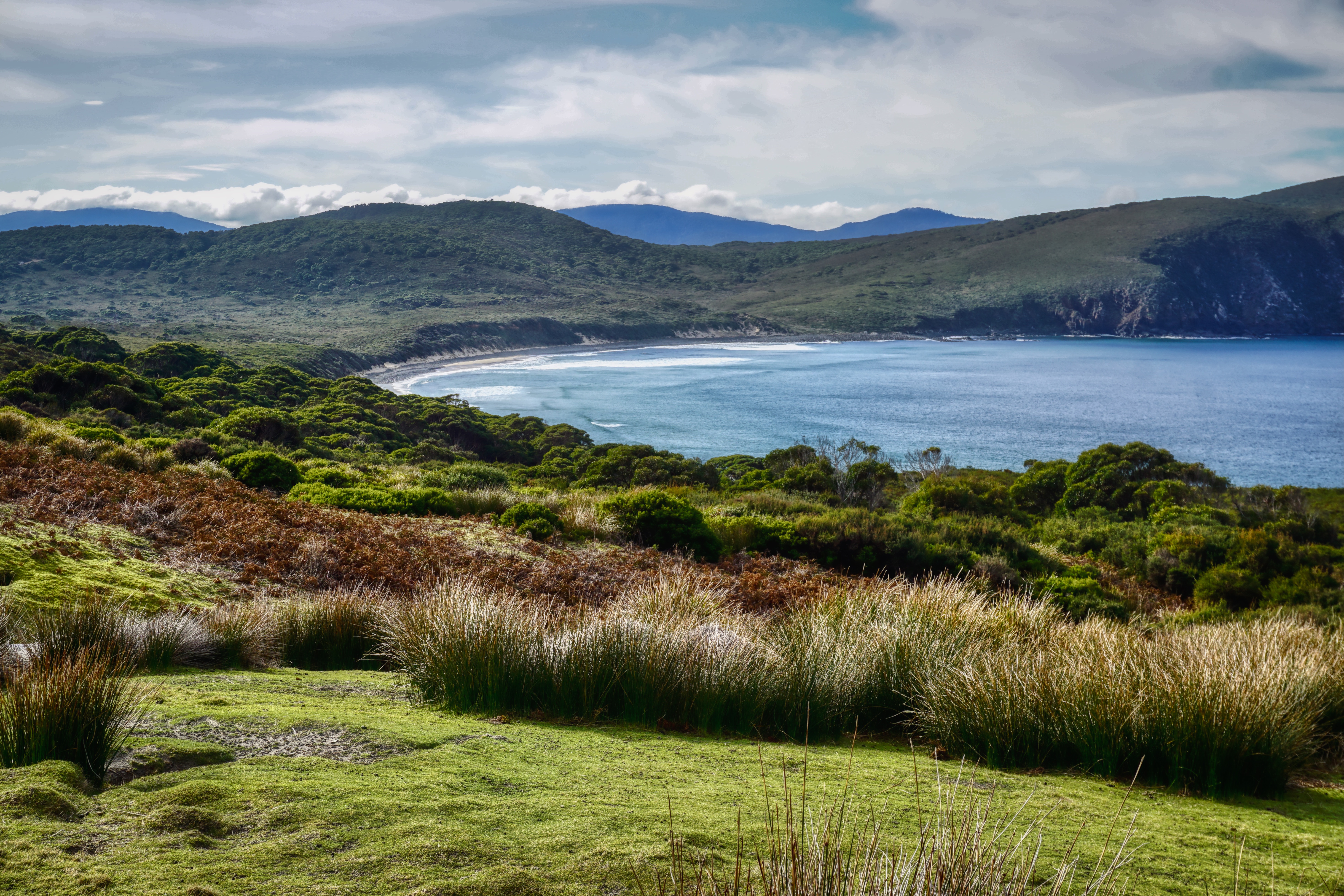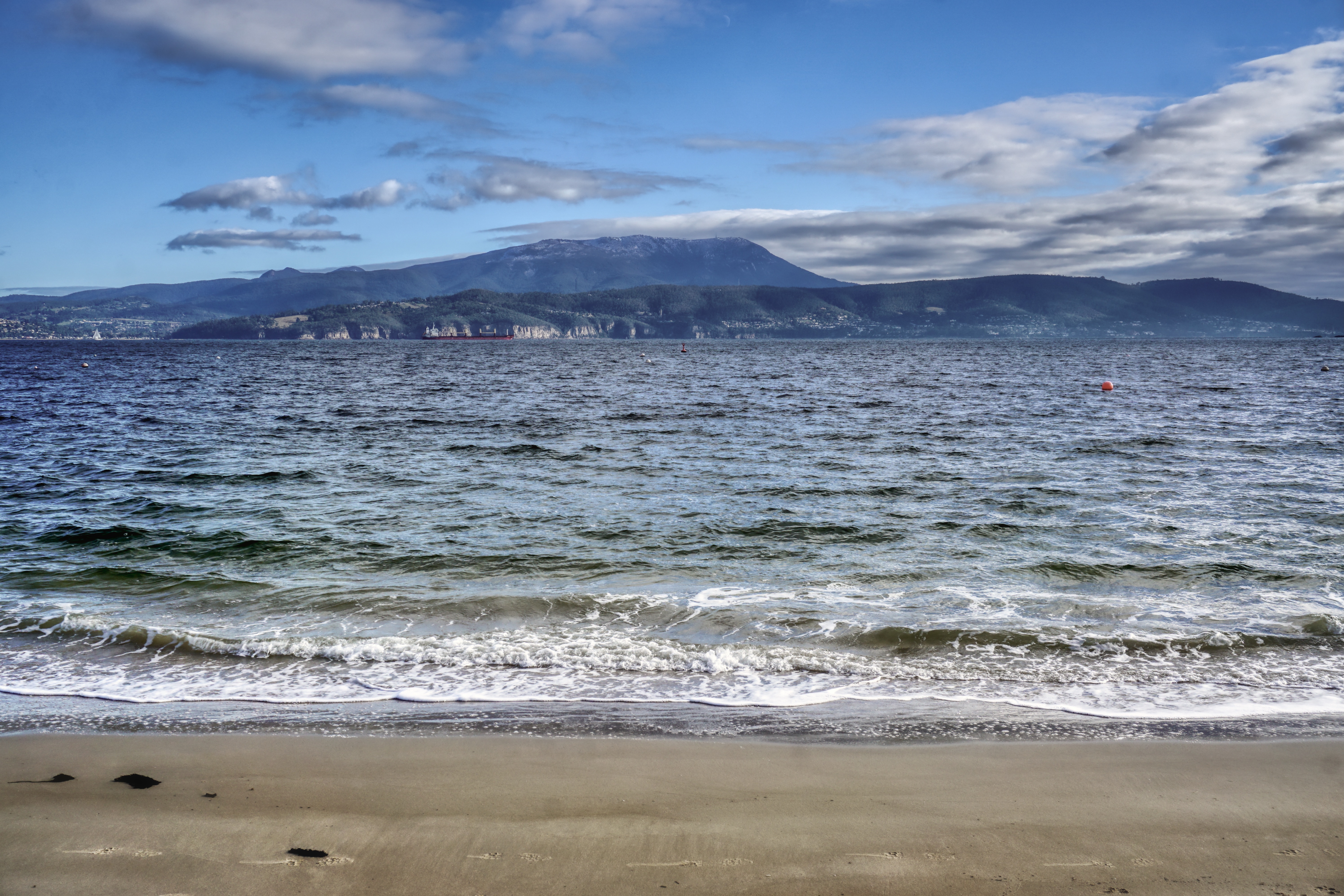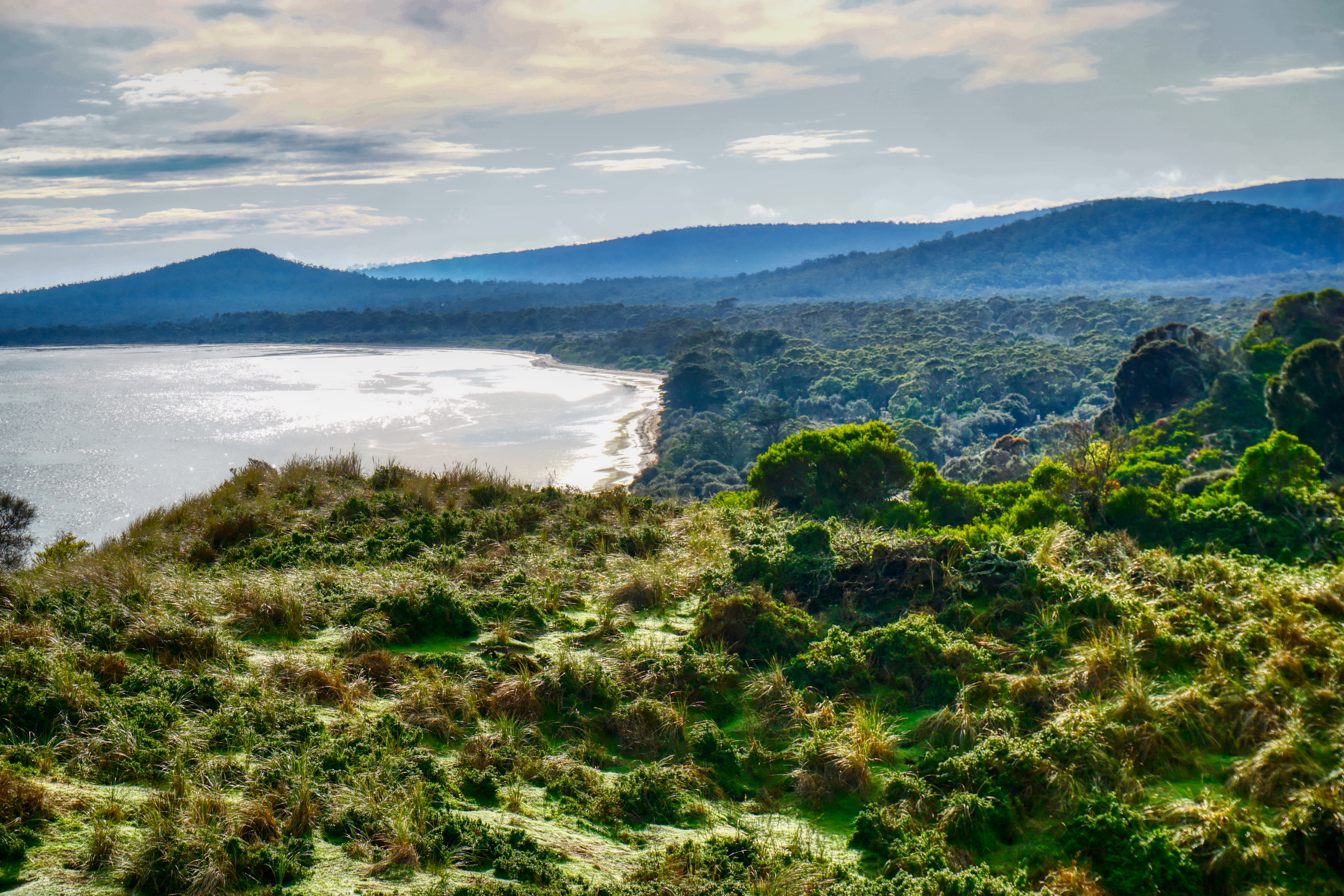 We drove over to Bruny one misty cold morning via the car ferry at Kettering, to discover a much bigger island than first thought. At 362 square kilometres and over 50ks in length, there’s a lot to see here, not least the stunning wilderness, both on the island and, back cross the channel, to snow-capped mountains and the Southwest National Park.