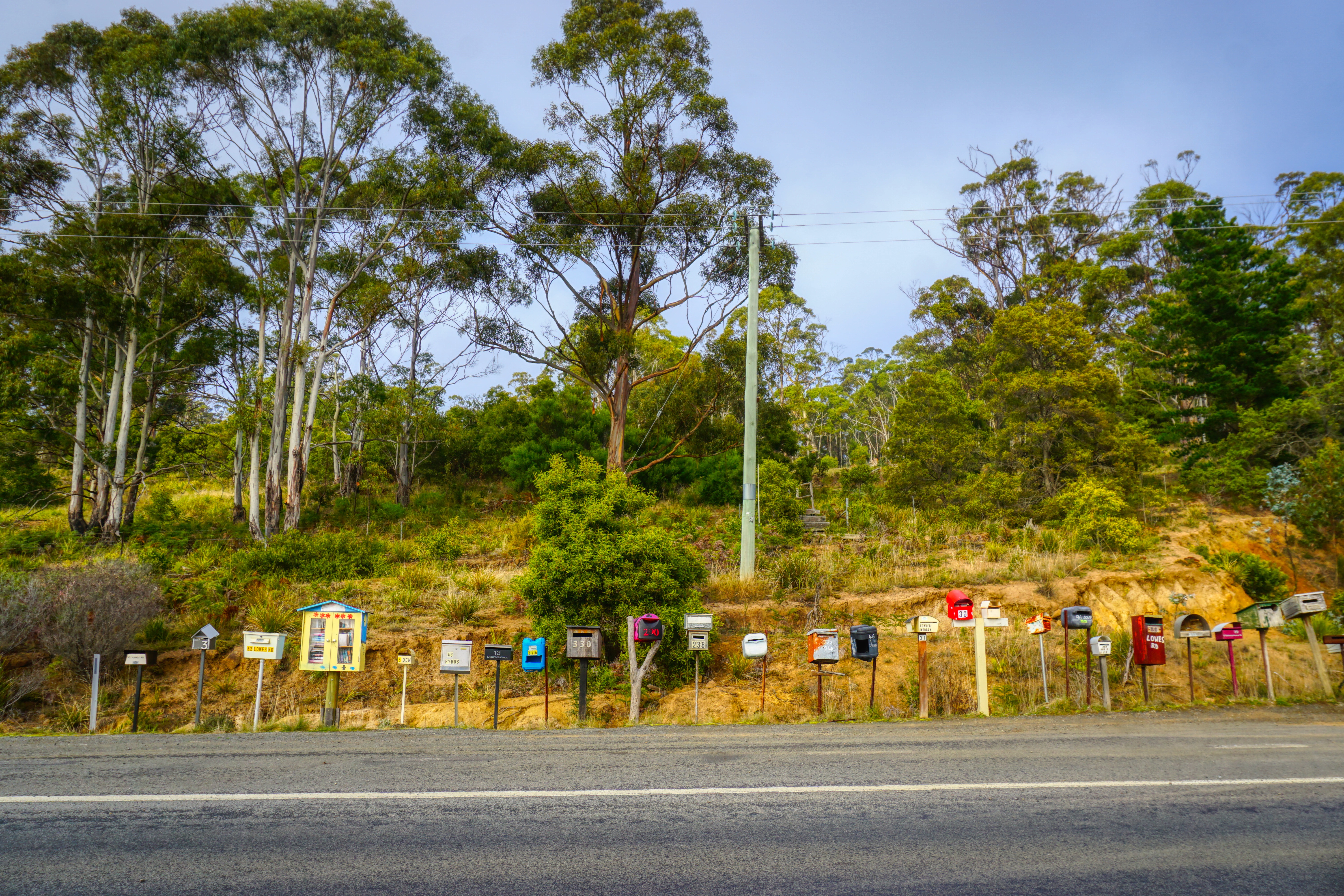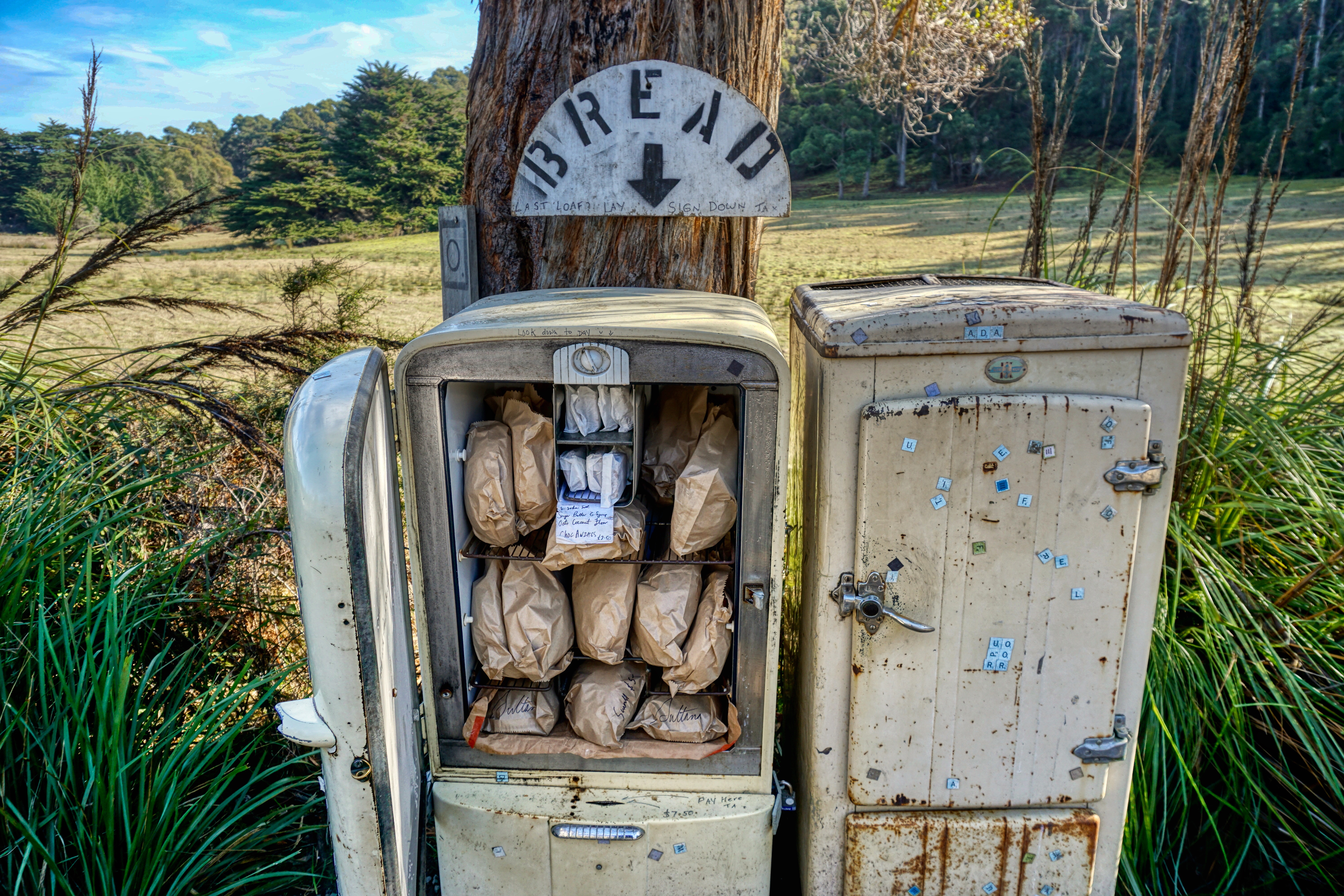 It’s a laid-back life on this island, even more so than the ‘big island’… here you’ll find freshly made bread and Anzac biscuits stuffed into old fridges that stand beside the road, with an honesty slot for your $7. There are parades of colourful letterboxes that announce the turnoff to a tiny hamlet of souls. Small roadside book exchanges. And perhaps as a result of the prolific wildlife here and the inevitable roadkill, small shops offering homemade Wallaby Burgers.
