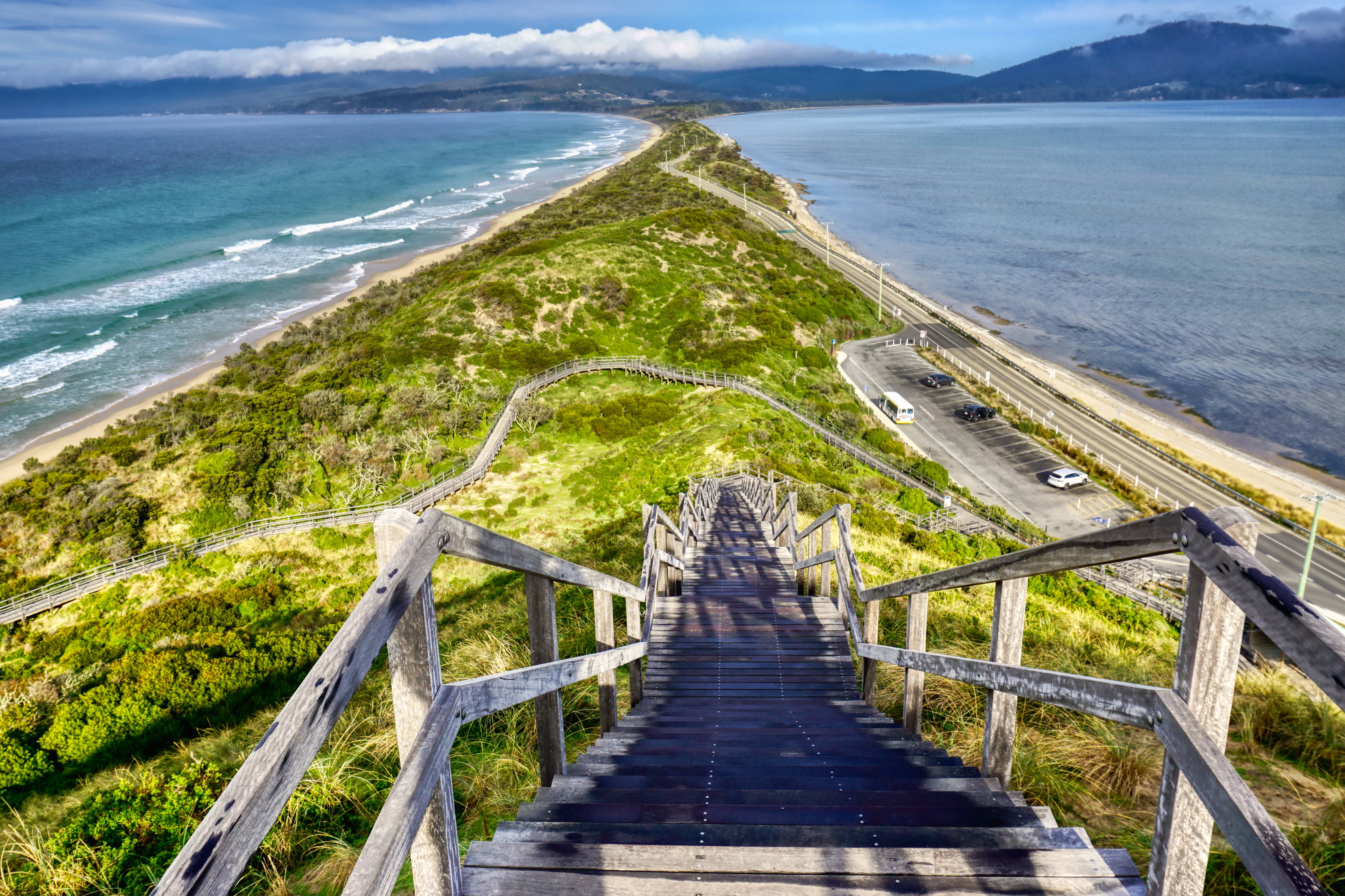 There’s a spectacular 360-degree lookout here accessed by 279 wooden steps with a small monument at the top commemorating one of the last native speakers of the indigenous language and, sadly, one of the last individual souls of pure Aboriginal Tasmanian descent. Truganini was born in 1812 on Lunnawannalonna (the pre-European name for the island) daughter to the island chief and died on the 8th May 1876.