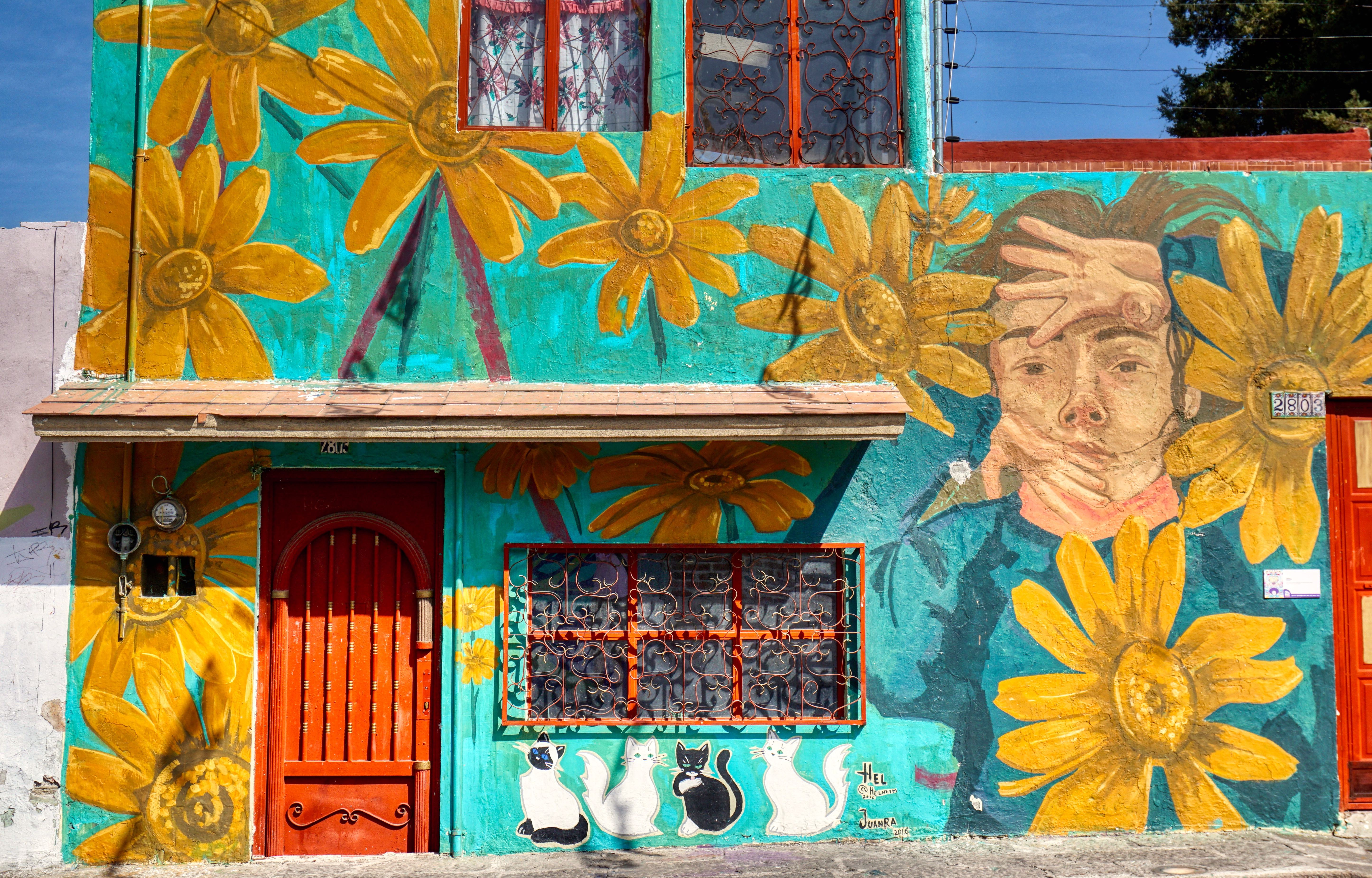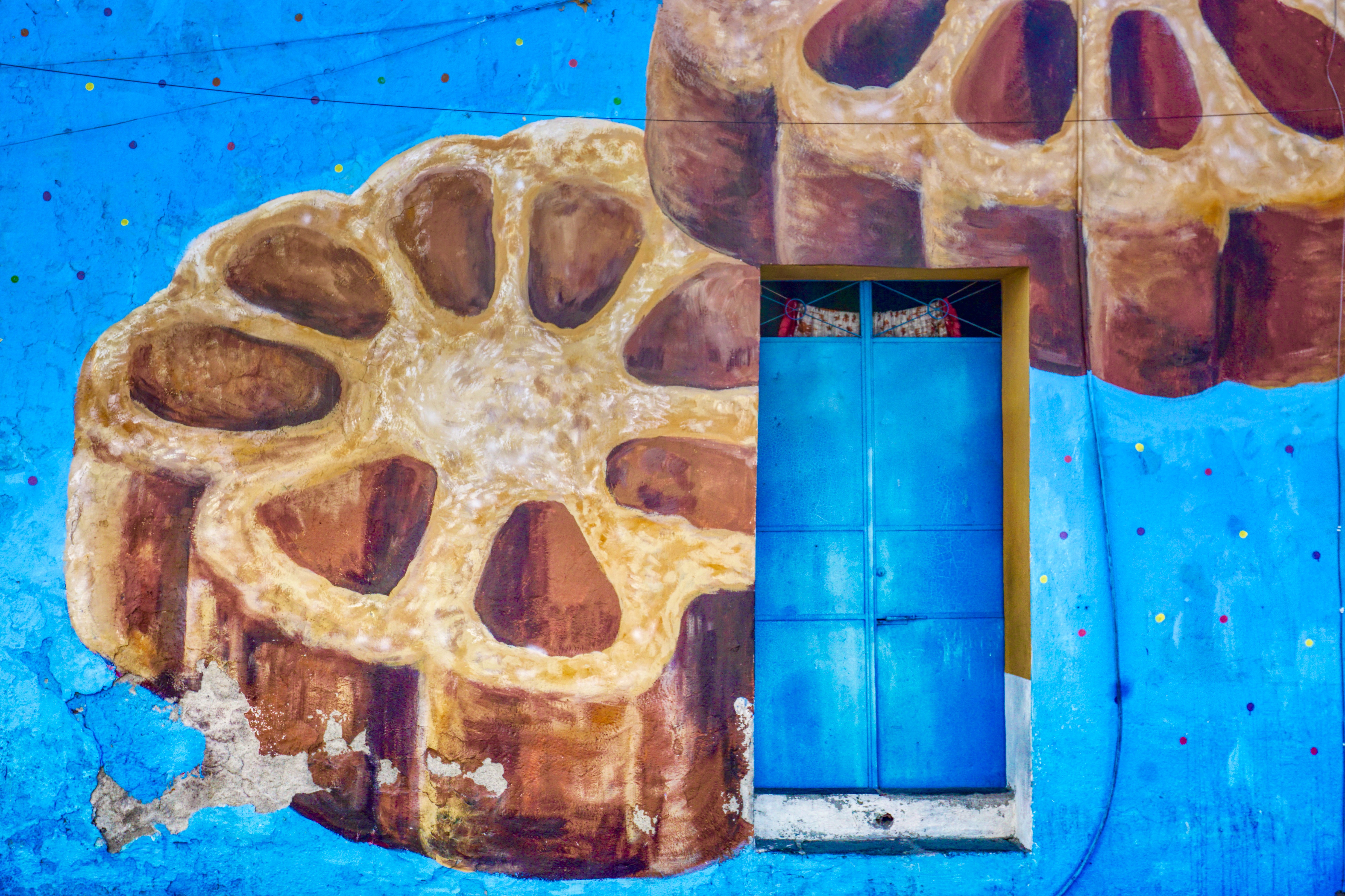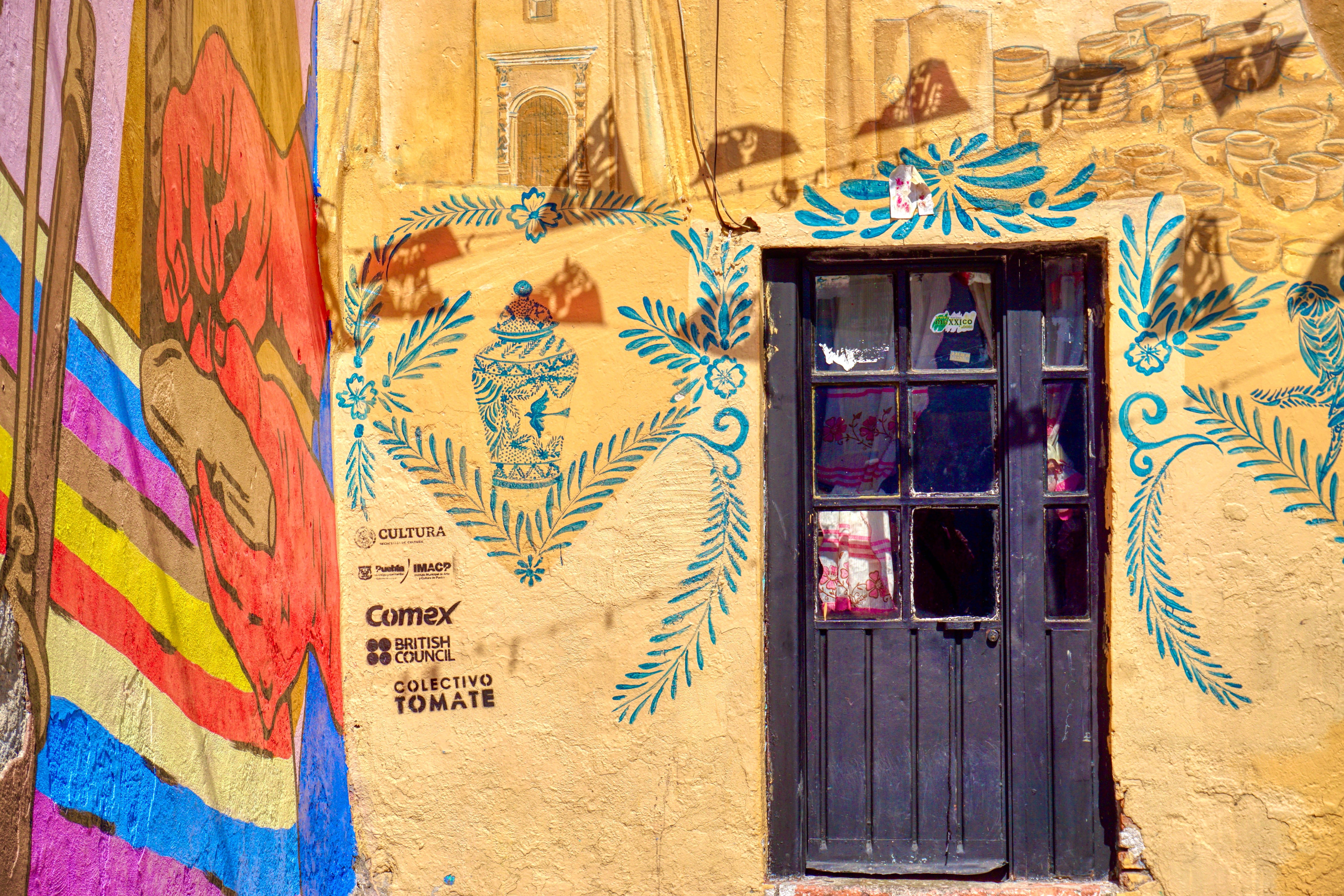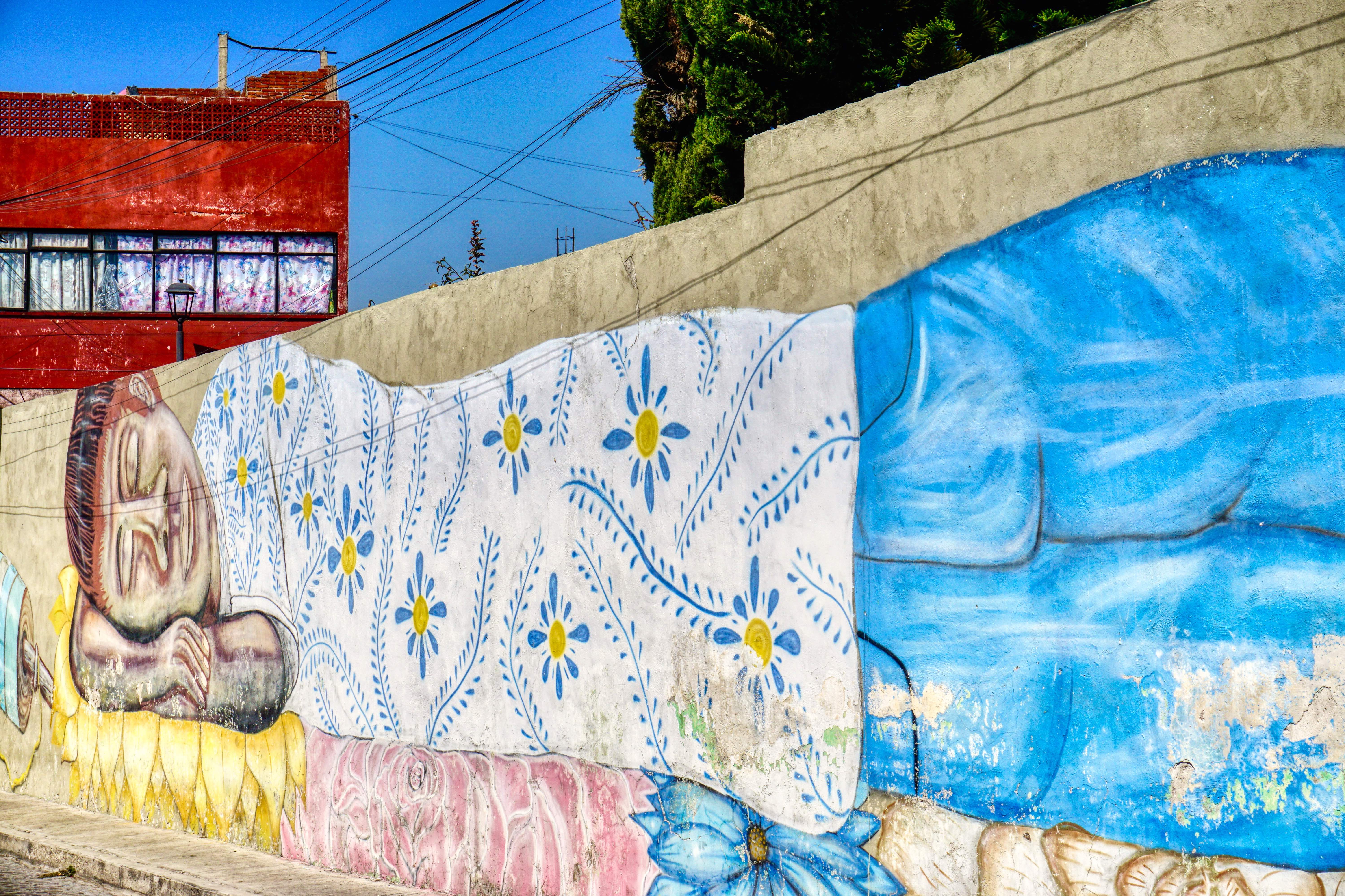 These days, to project their dreams and identity, the residents of Xanenetla have worked alongside City Government and ‘Colectivo Tomate’ to develop a ‘Ciudad Mural’, by painting more than 55 murals to decorate their houses and laneways. It’s a residential area that’s very much off the so called ‘Spanish Draft’ and is a warren of narrow laneways and alleys, all covered in bright colours and motifs. The effect is quite stunning, particularly on this blazing sunny day, and a world away from the Baroque ‘splendour’ of downtown Puebla.