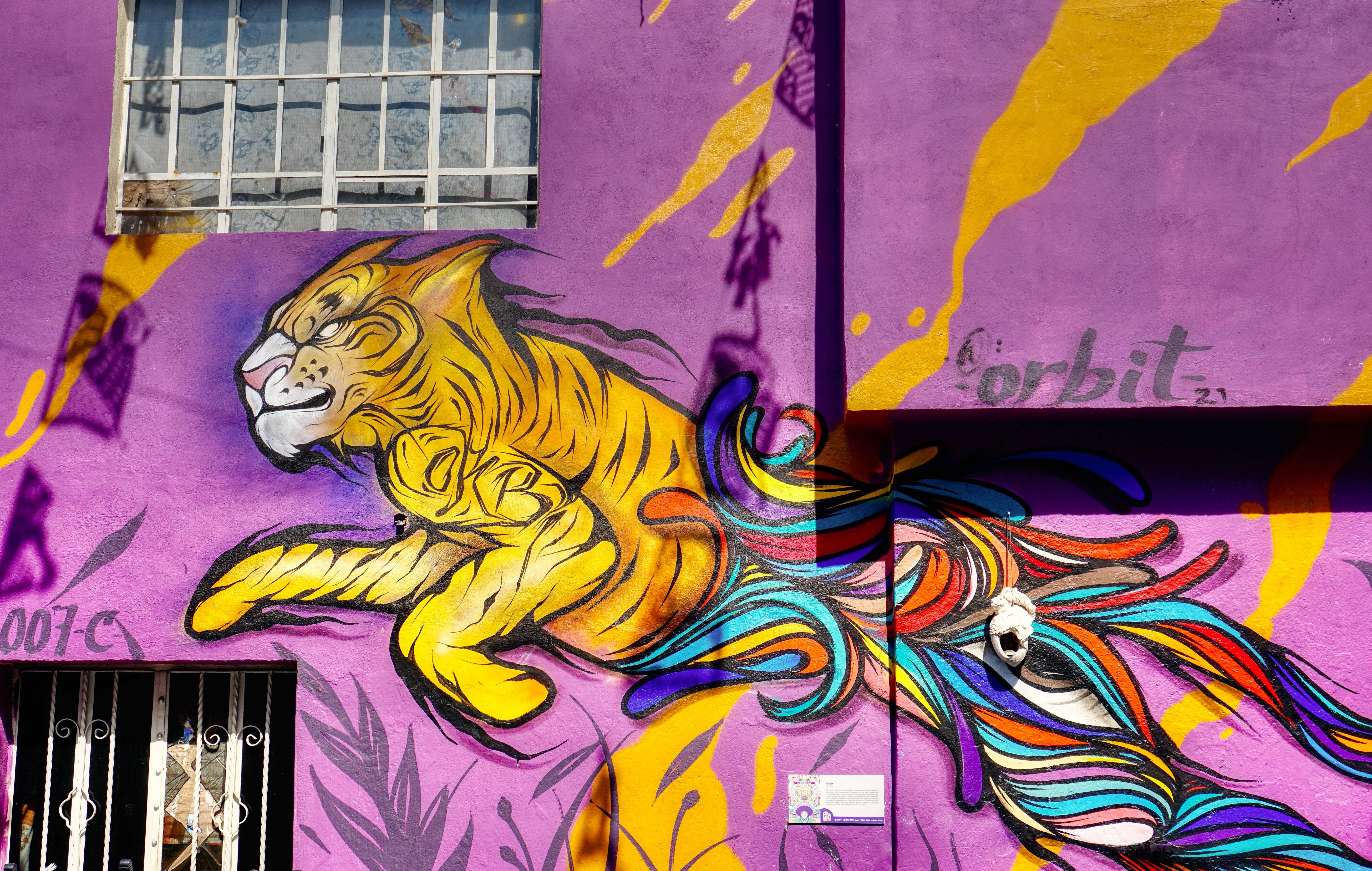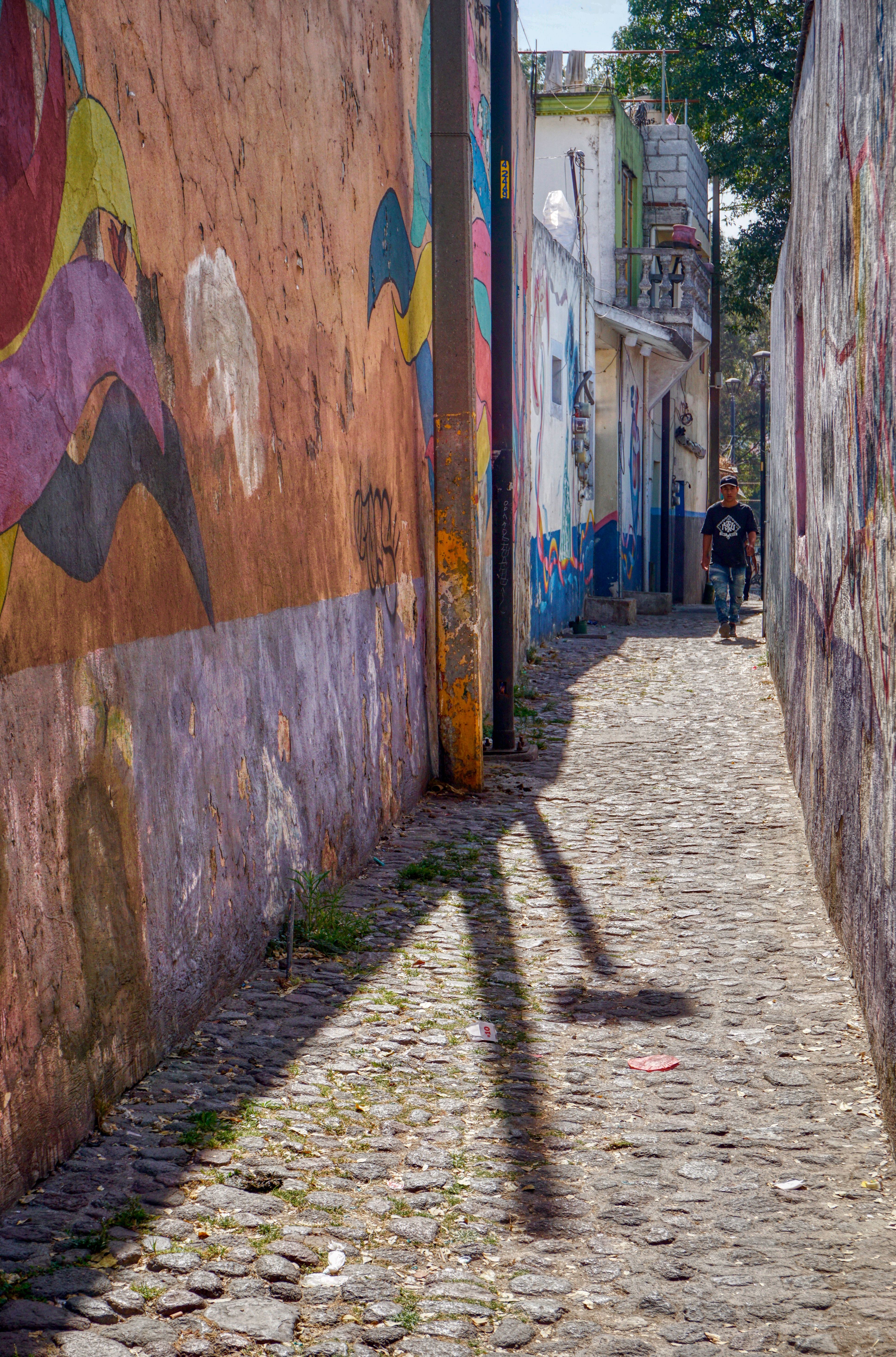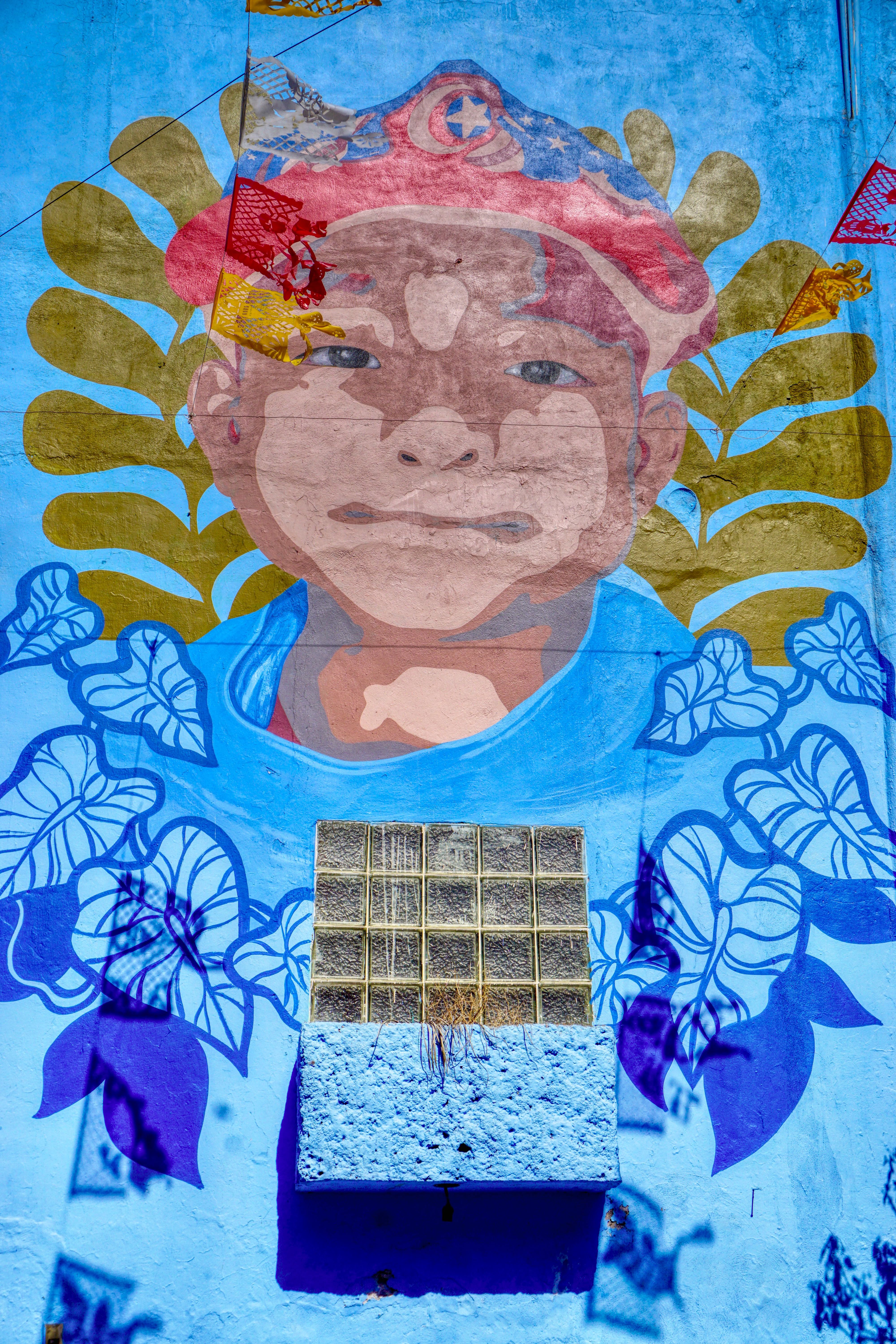 These days, to project their dreams and identity, the residents of Xanenetla have worked alongside City Government and ‘Colectivo Tomate’ to develop a ‘Ciudad Mural’, by painting more than 55 murals to decorate their houses and laneways. It’s a residential area that’s very much off the so called ‘Spanish Draft’ and is a warren of narrow laneways and alleys, all covered in bright colours and motifs. The effect is quite stunning, particularly on this blazing sunny day, and a world away from the Baroque ‘splendour’ of downtown Puebla.