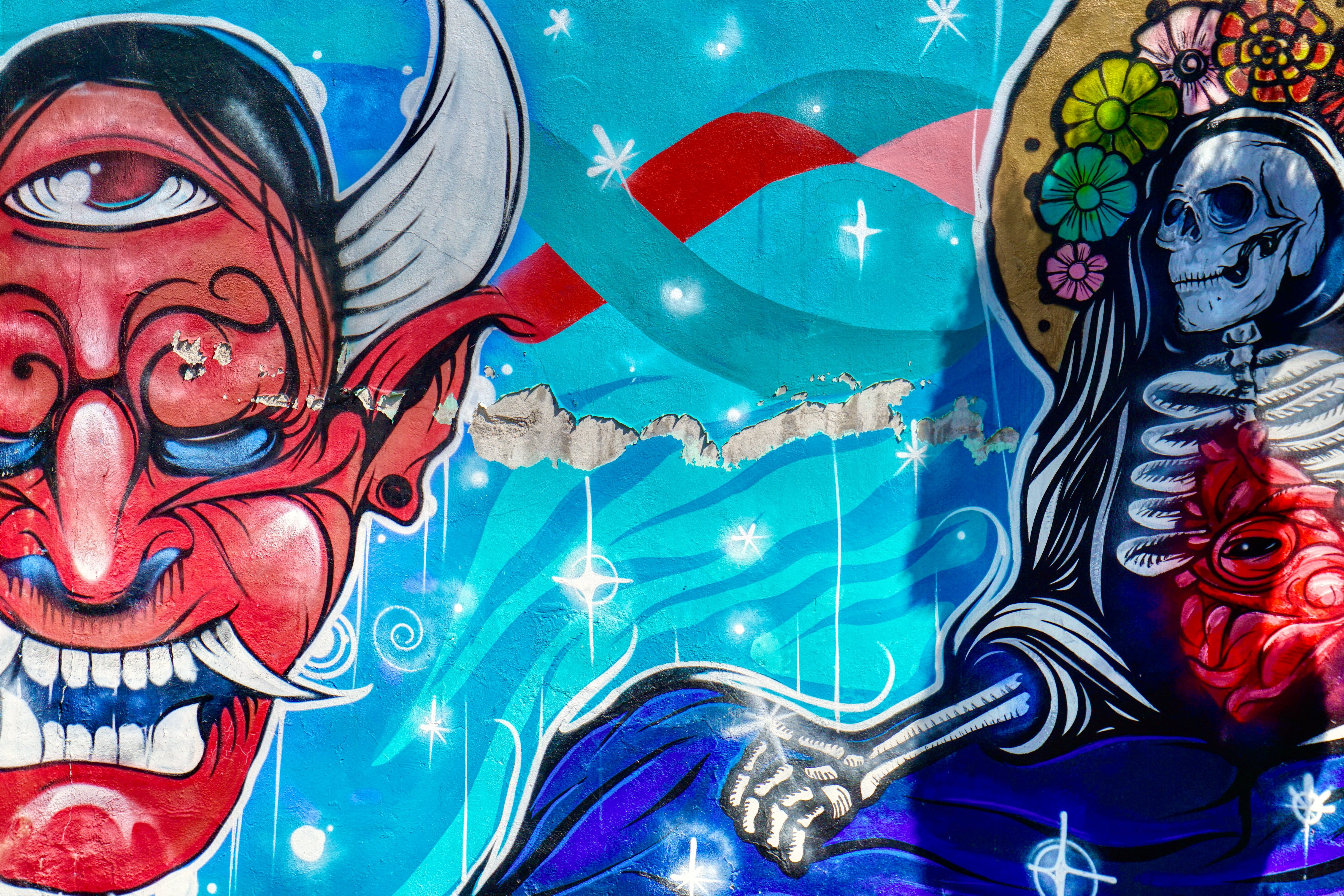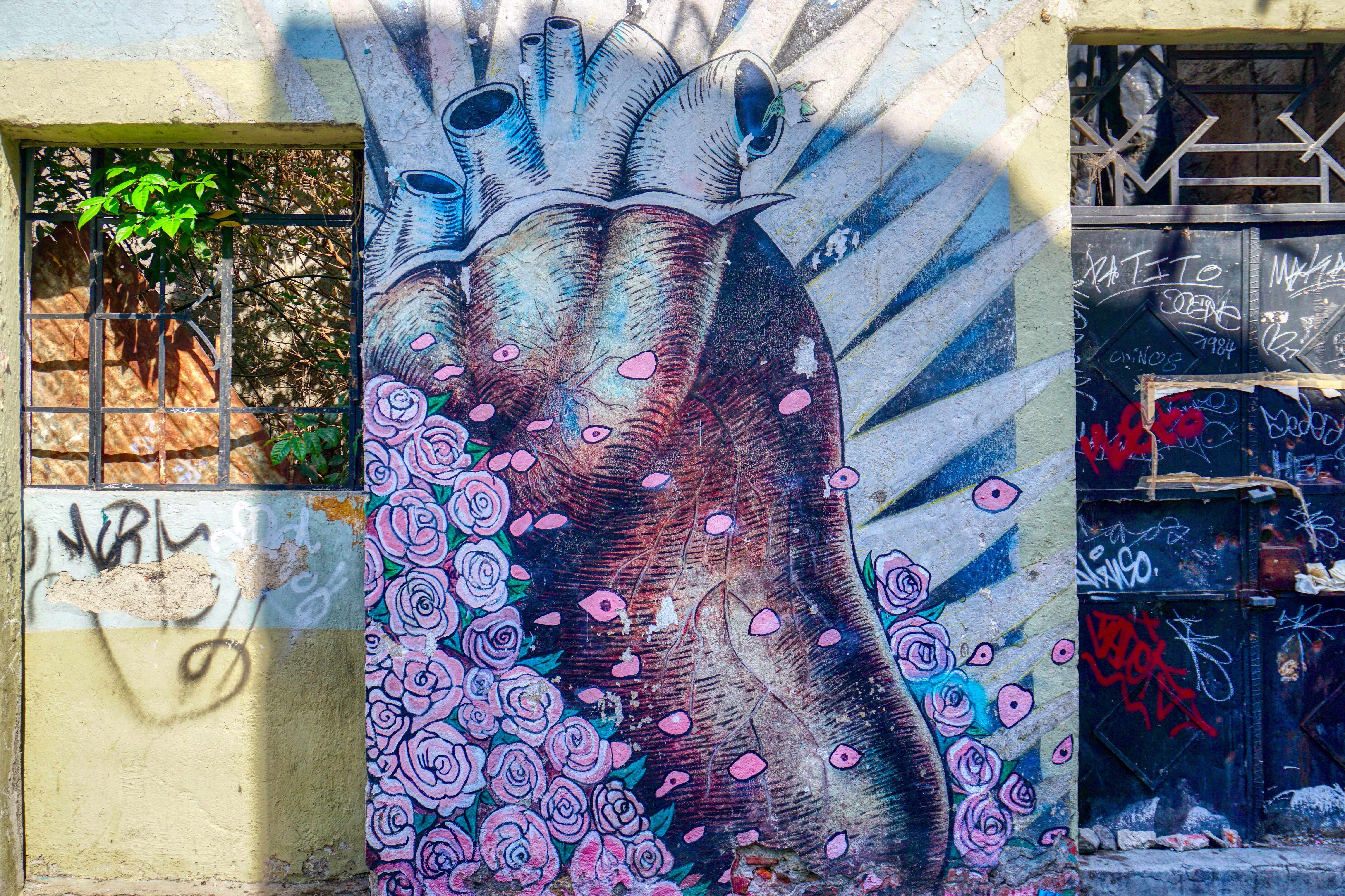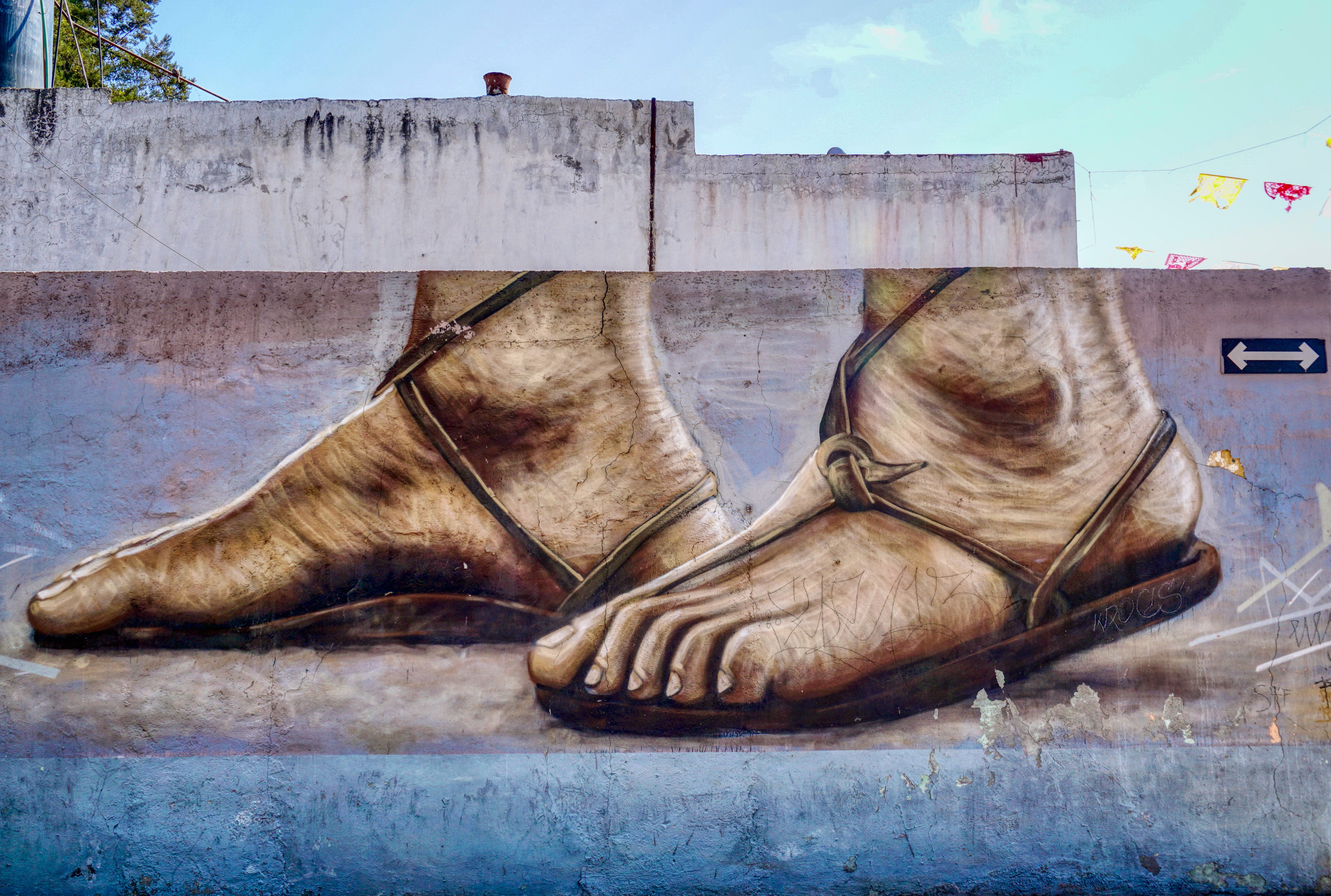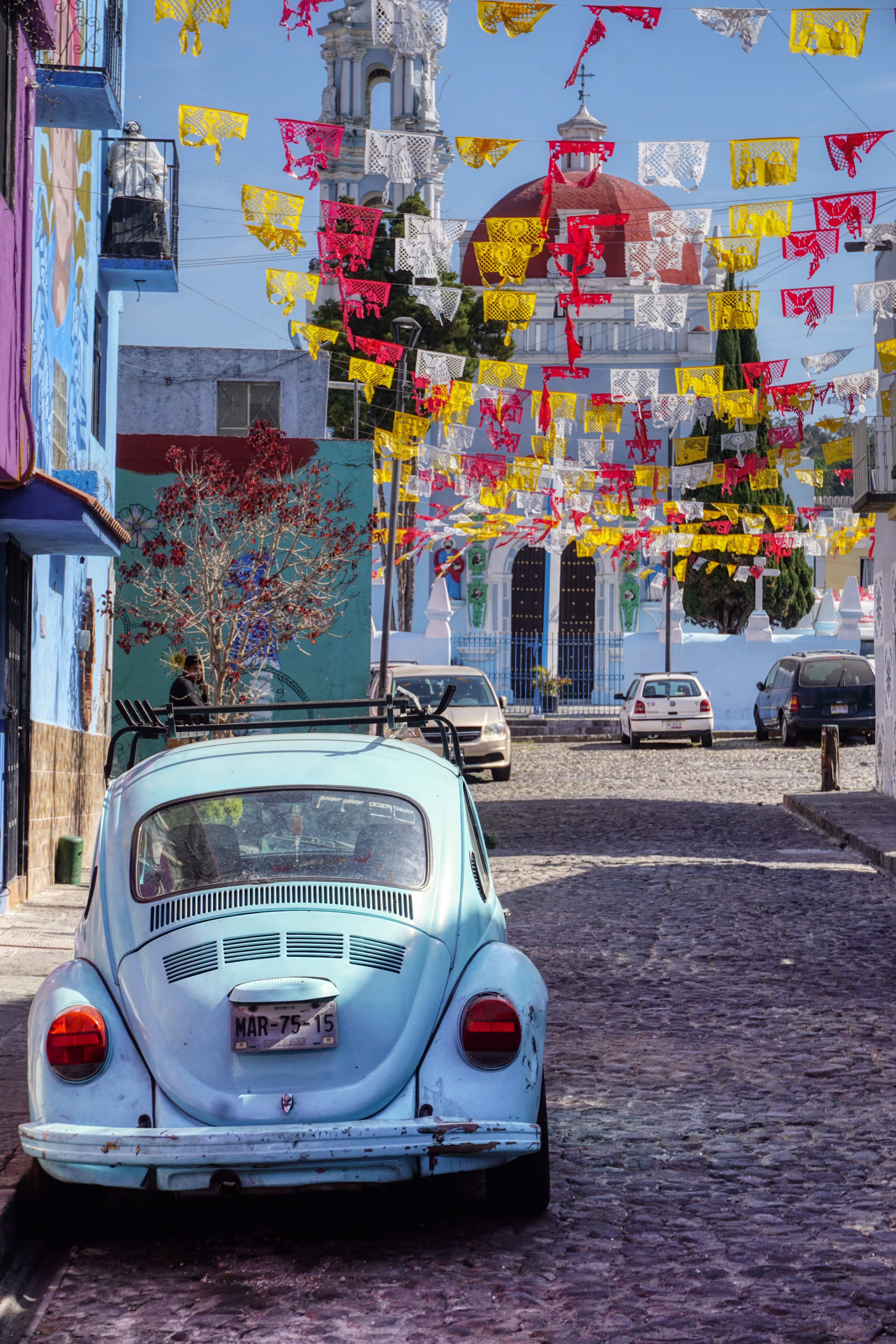These days, to project their dreams and identity, the residents of Xanenetla have worked alongside City Government and ‘Colectivo Tomate’ to develop a ‘Ciudad Mural’, by painting more than 55 murals to decorate their houses and laneways. It’s a residential area that’s very much off the so called ‘Spanish Draft’ and is a warren of narrow laneways and alleys, all covered in bright colours and motifs. The effect is quite stunning, particularly on this blazing sunny day, and a world away from the Baroque ‘splendour’ of downtown Puebla.