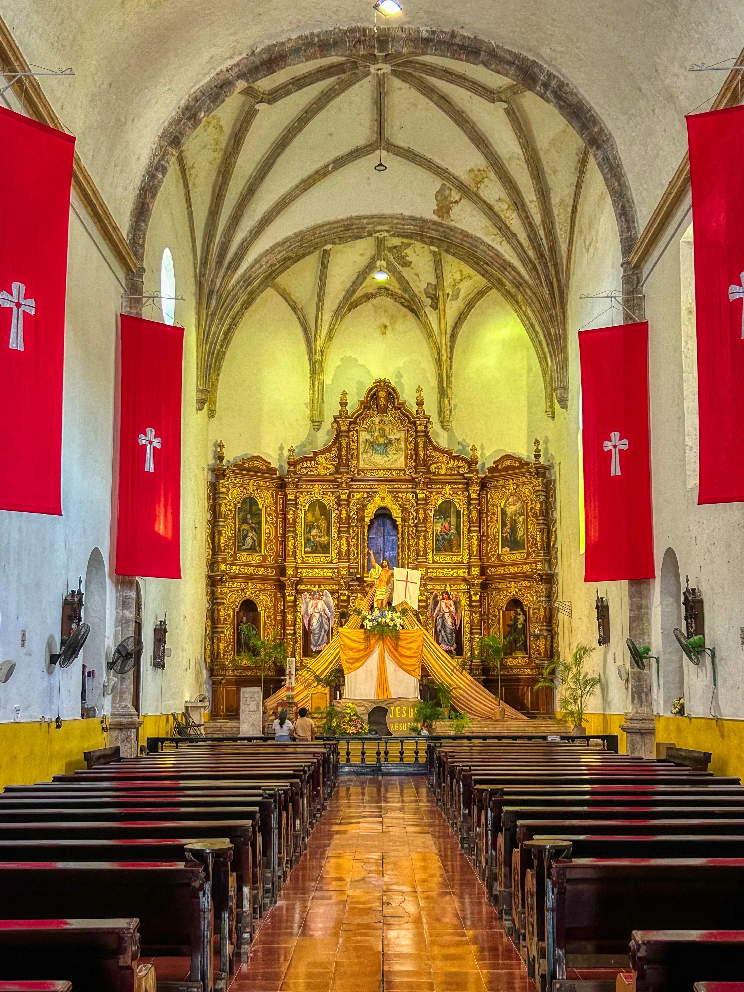 I’ve written previously about Izamal but it’s important to remember what once stood here – pre-Conquistadores that is. There are a number of large Mayan structures still present right in the middle of town, including the great temple of the Maya Sun God, Kinich Kak Mo (Meaning: Macaw of the Solar Fire Face – see post from 2022) which incredibly has an 8000 m2 base and a volume of some 700,000 cubic metres – and on top of which sits a 10-level pyramid! Nearby is what remains of an enormous acropolis, Ppap Hol Chak, which was so vast that the Spanish had little choice but to build on top of (rather than attempt to demolish) the existing Mayan structure. As was their method, they used existing stone blocks, many with glyphs still showing, to create their own churches, including the Franciscan monastery, el Convento de San Antonio de Padua, which dominates today the site of the old acropolis. Completed in 1561 and with an enclosed atrium of seventy-five arches so vast that it is second in size only to the square of St Peter’s In Rome (big enough indeed for Pope John Paul II to hold mass there on his triumphant visit to Mexico). But, apart from Kinich Kak Mo and a few other smaller temple structures dotted around town (some wedged between houses), there’s little left of a great Mayan city, once one of the largest and most important of Mayan cities, founded between 750-200BC and continuously occupied right up until the Spanish Conquest of the Yucatan in the early 16th Century.