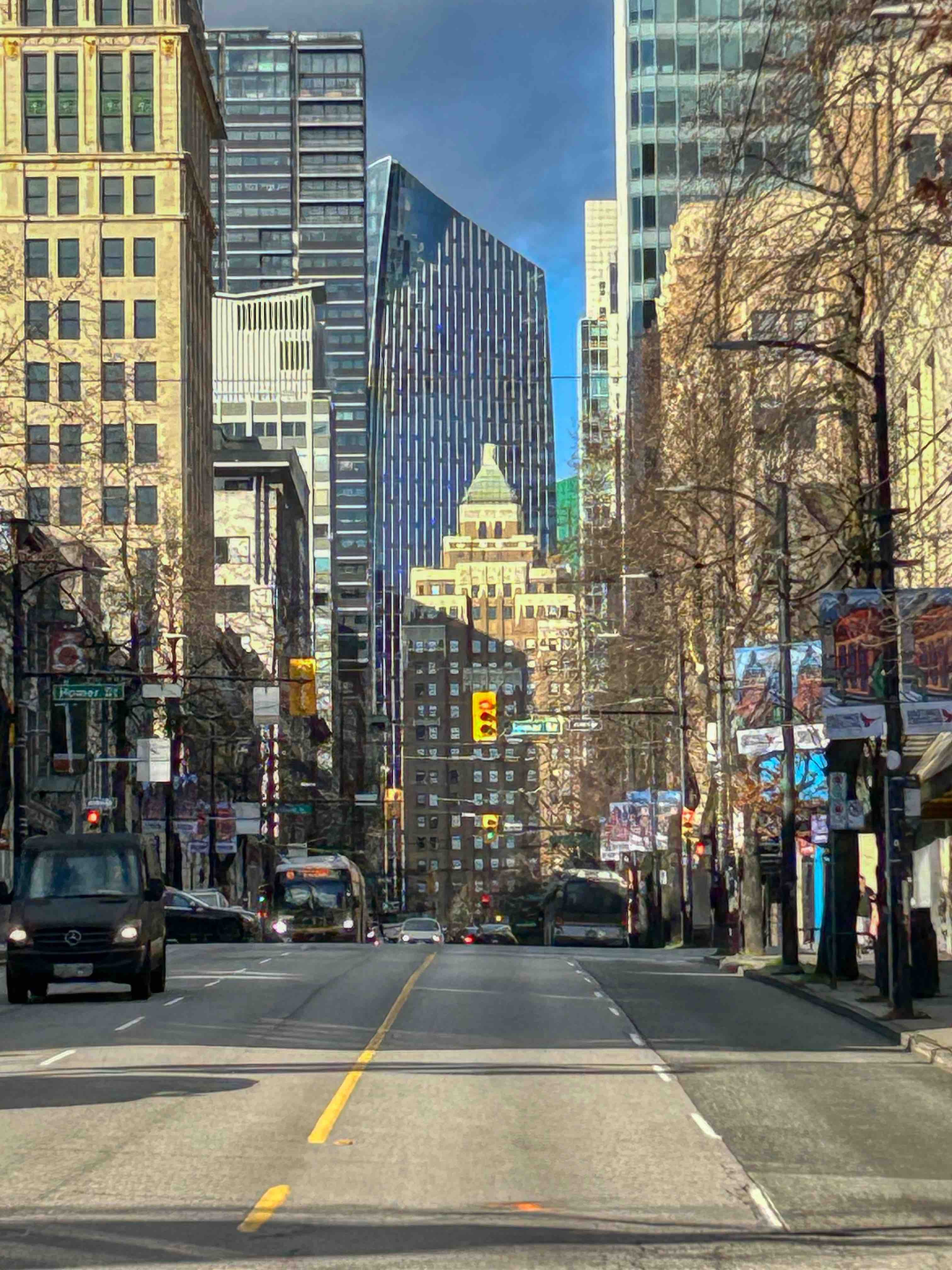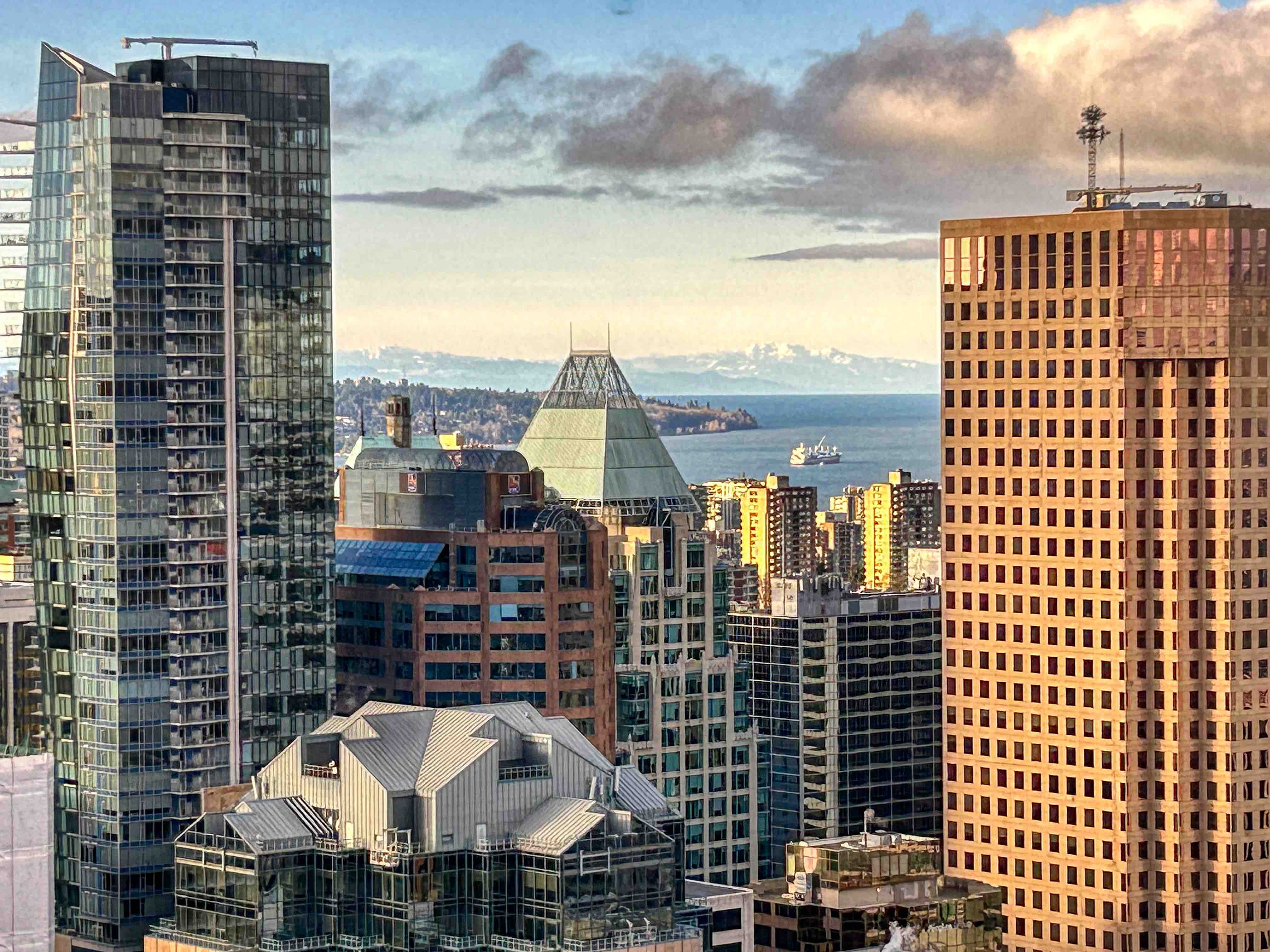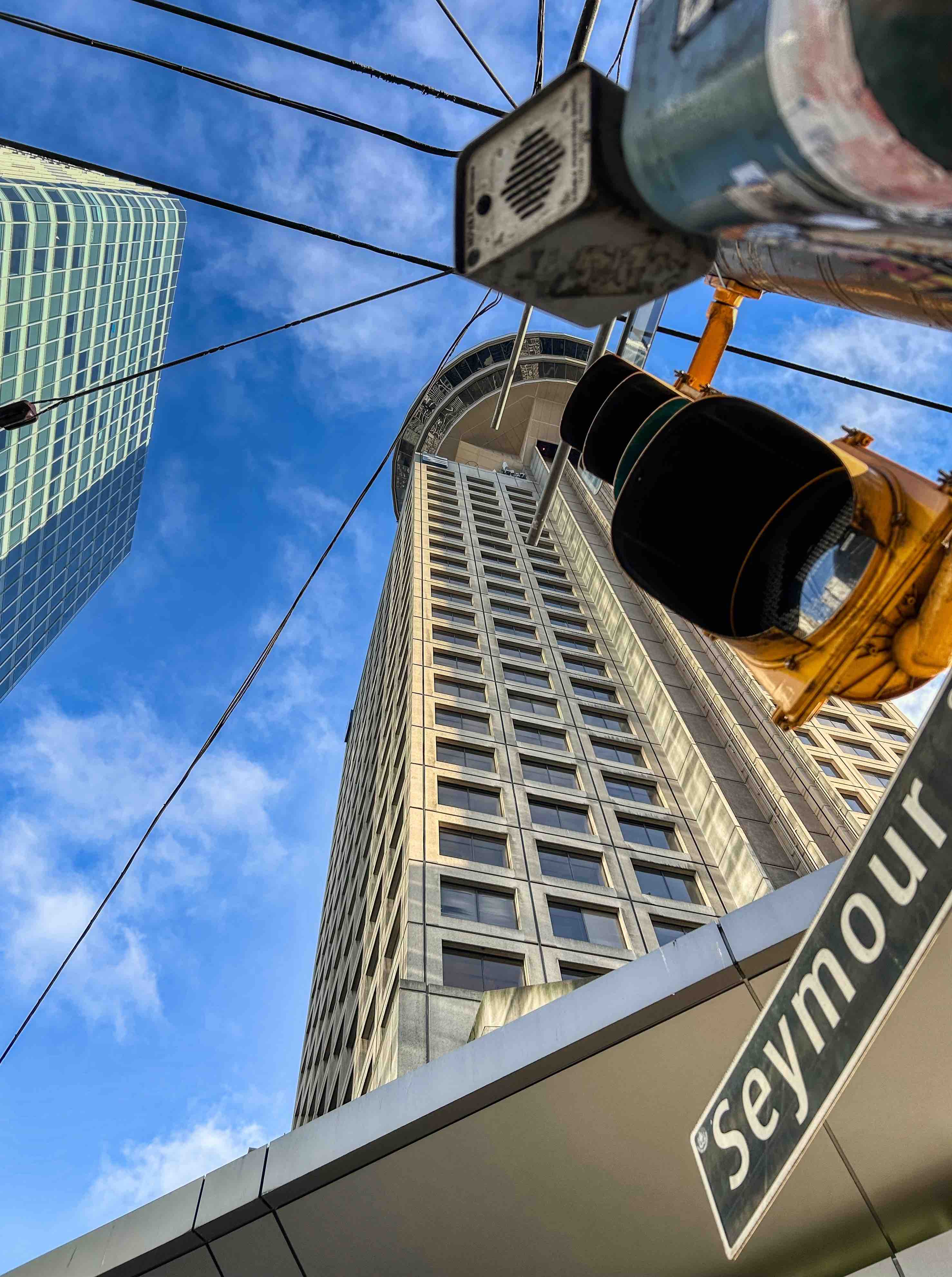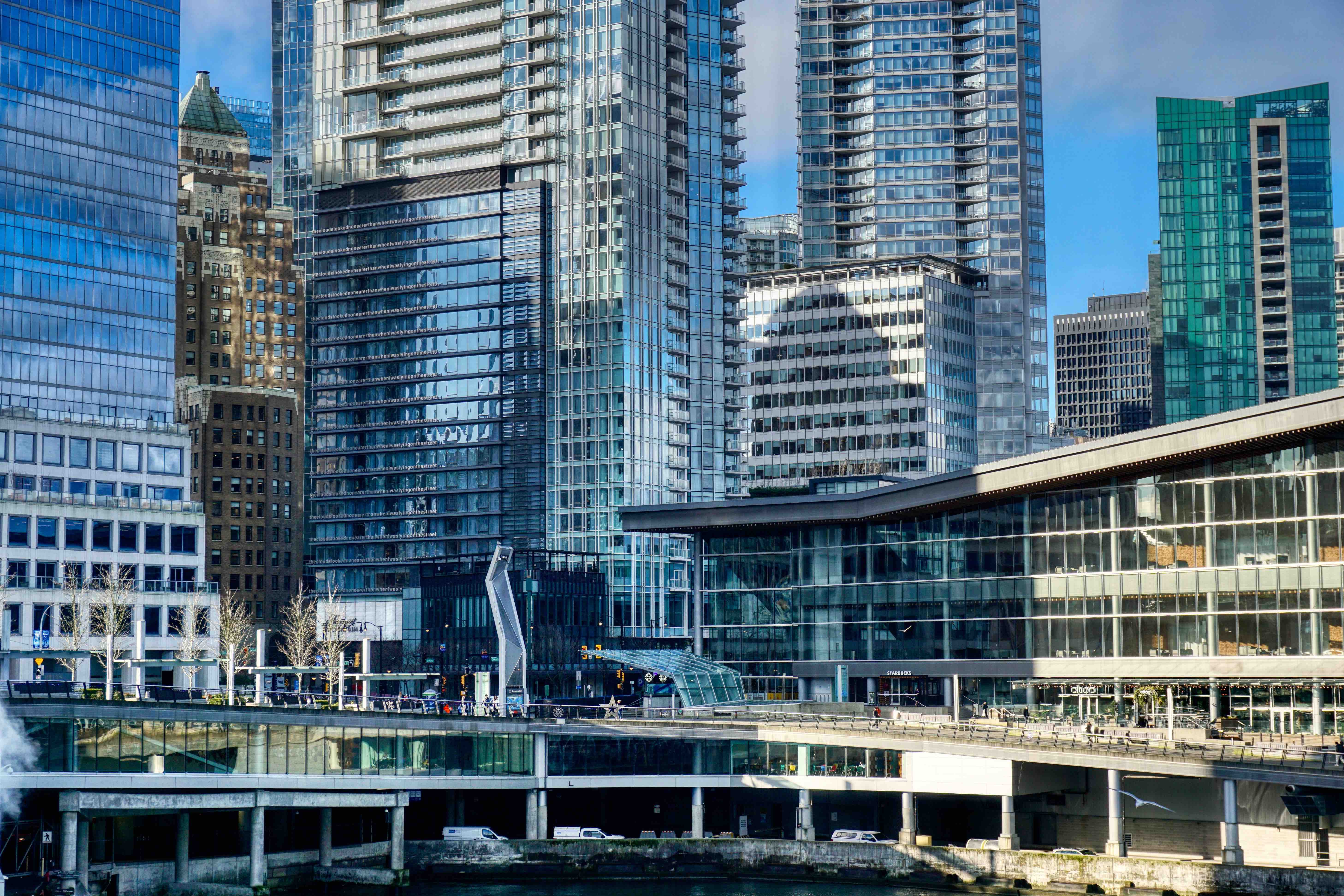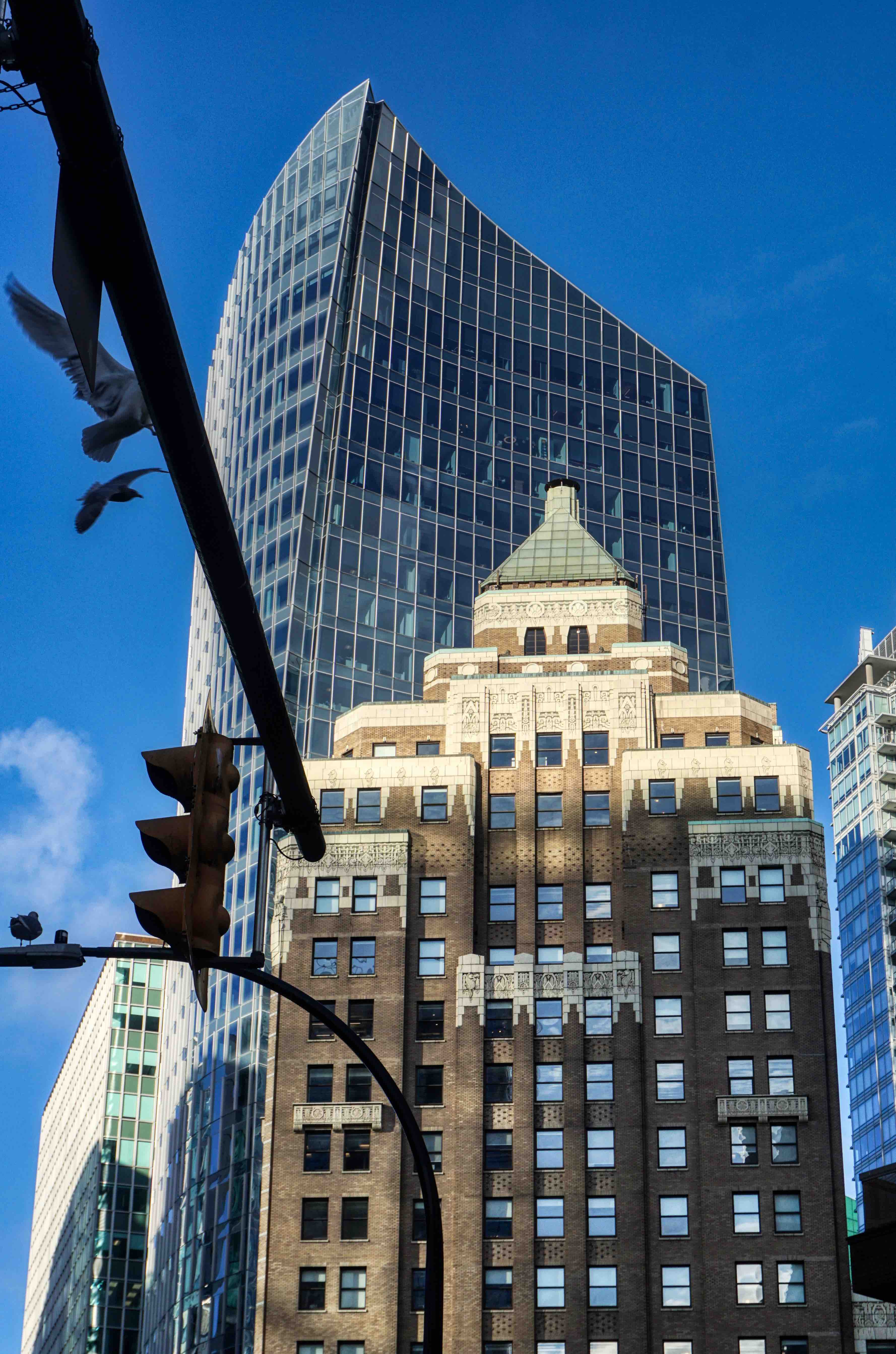 There are some beautiful buildings here both old and new. My two favourites are at the opposite ends of the spectrum, age and design wise. First up, the beautiful Art Deco Marine Building. Completed in 1930, it was the city’s tallest building and is listed as one of the best-preserved Art Deco buildings in the world. According to the architects, the building was intended to evoke ‘some great crag rising from the sea, clinging with sea flora and fauna, tinted in sea-green, touched with gold’. Well, I reckon they nailed it! It reputedly cost C$2.3 million to build, a huge amount of money in the late 1920’s. And a staggering C$1m over budget! And its timing was terrible – due to the Great Depression, it was ultimately sold to the Guinness family of Ireland (who have bought and sold a shedload of property and land here over the years) for just $900,000. Today, the building has been largely refitted to house modern commercial tenants, so only the magnificent exterior and the lobby with its marine-themed carvings, stained glass and gorgeous brass elevators are accessible to the visitor.