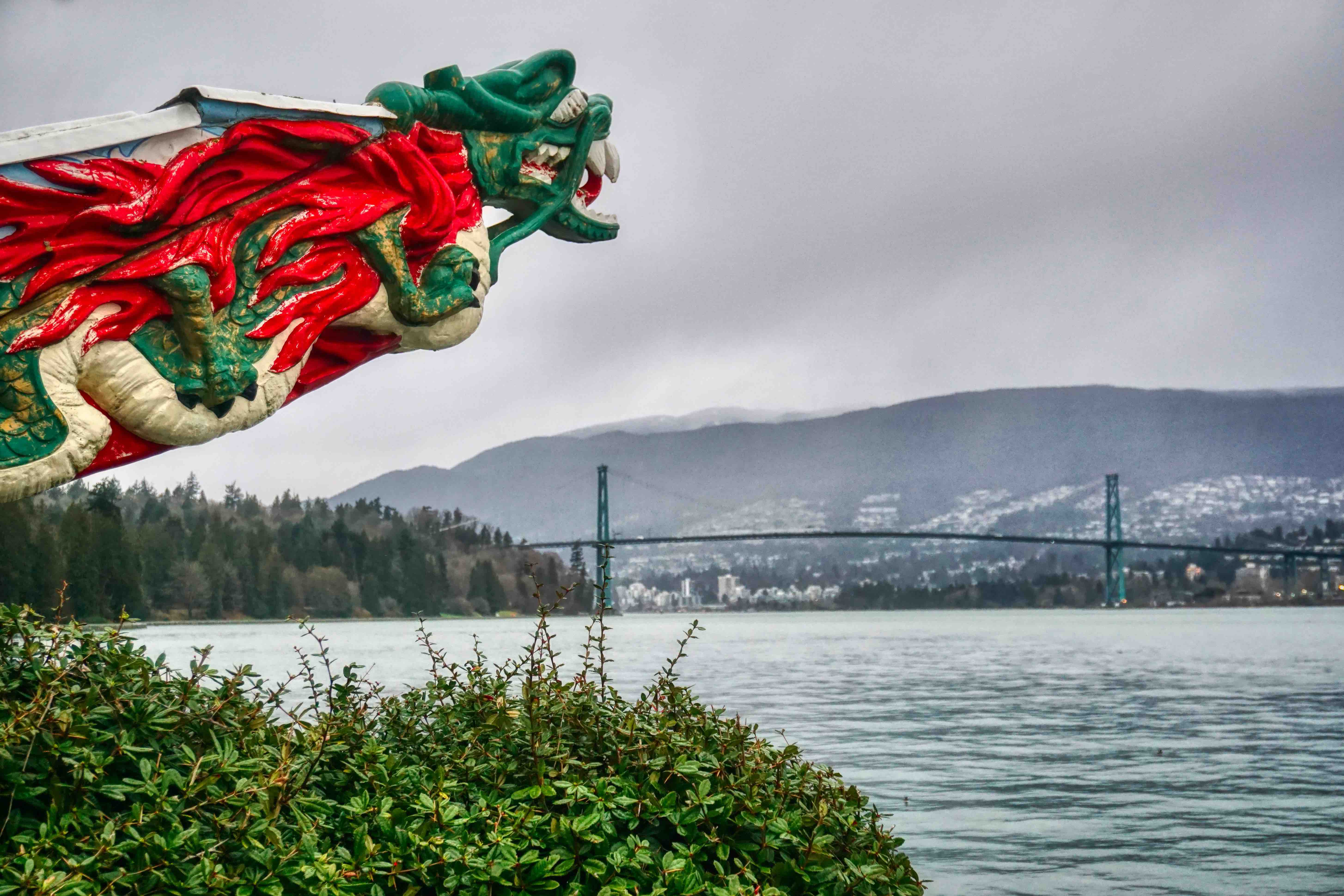 We’ll need to come back and explore the forested interior of Stanley Park (perhaps on a dry day – if there is one), as it’s a true urban oasis of lush West Coast rainforest with ancient Douglas Firs, Cedars and Hemlocks with miles of hiking trails. We were told (by our Korean Uber driver) to watch out for the Coyotes in the park, which are part of the natural ecosystem here. Apparently, they’re often seen at dawn and dusk, but as with most urban centres around the world (think of London’s Fox problem), they’re becoming bolder due to human proximity and food, with garbage left out and even intentional feeding by some irresponsible people. Naturally, this has led to some aggressive behaviour, resulting in the sad culling of the animals. There are signs throughout the park and adjacent areas advising visitors of how to co-exist with Coyotes, with one tip on encountering an animal to ‘Be big brave and loud. Stand tall with arms overhead. Yell “Go Away Coyote!” Stand your ground and never run.’ – well, let’s hope we don’t have an actual encounter….